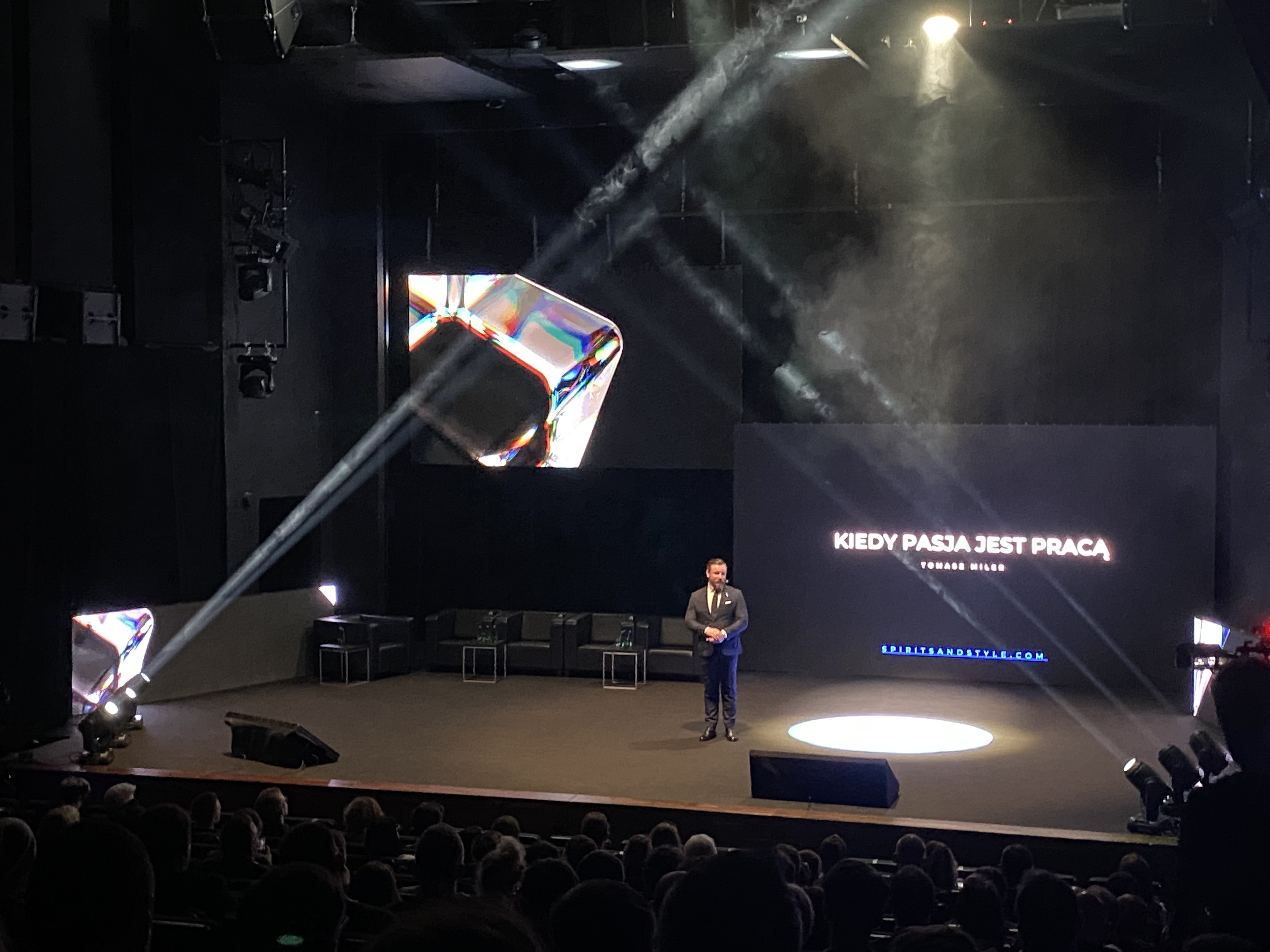 Na scenie, dla wygody prelegentów, stanęły nasze miękkie, czarne fotele oraz proste stoliki Cube.